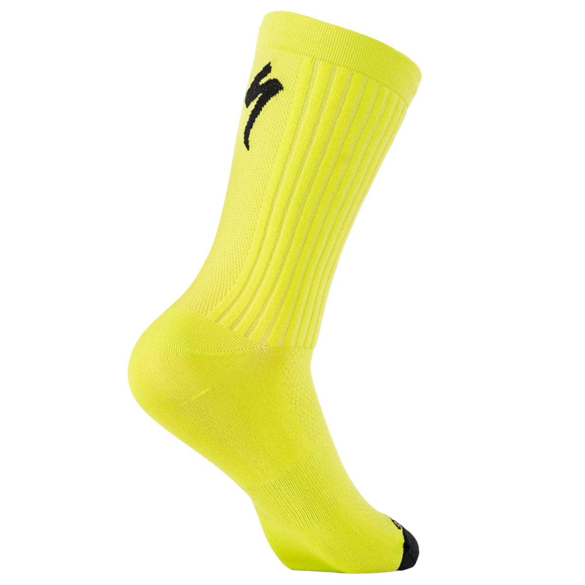 The Hydrogen Aero Tall Road Socks use the same VaporRize™ Hydrogen yarns used in our Hydrogen Vent Tall Socks, but add a rib-knit cuff that gives you an aerodynamic advantage over normal socks. Free speed+comfy feet=happy rides.