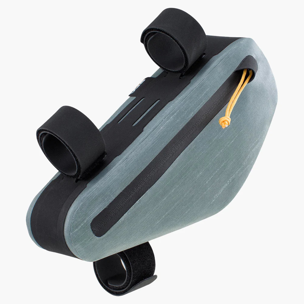 The name says it all, really. The smartly cut, waterproof frame bag is super easy to mount to all kinds of frame designs. No matter if you prefer gravel, mountain or road biking, this compact bag will let you carry tools, inner tubes, etc. within easy reach while perfectly protected from dirt and water. The velcro fastening straps can be cut to size and the multiple mounting options enable you to secure it virtually anywhere on your frame either vertically or horizontally; transparent frame-protection strips are included.