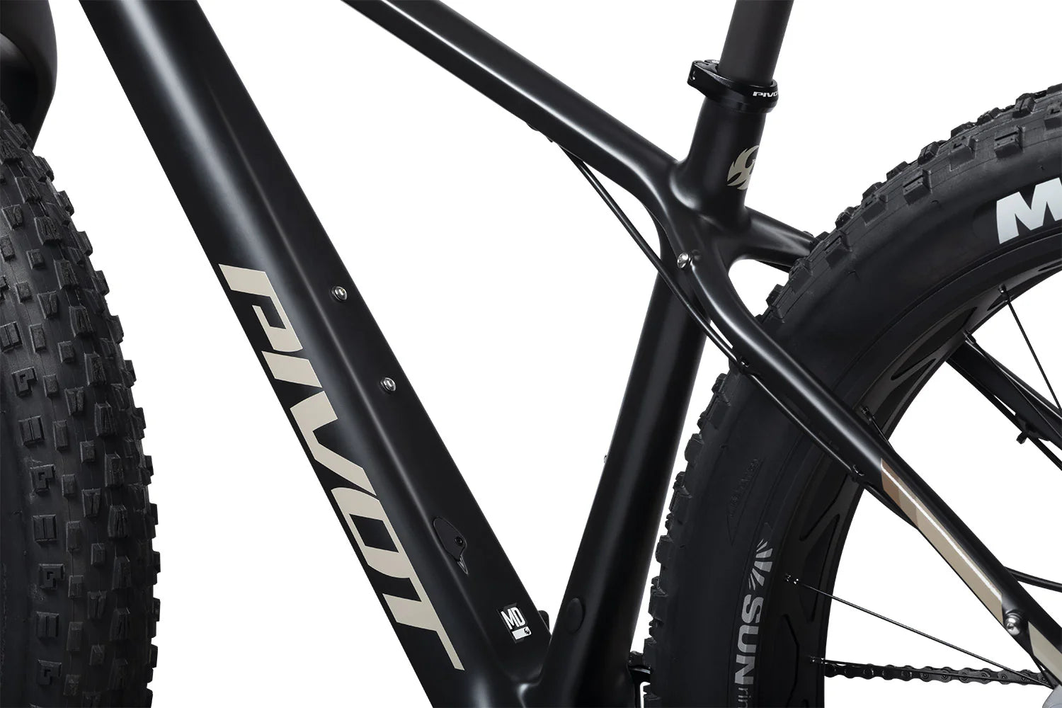 - Pivot-designed carbon fork with 150mm spacing. Suspension fork compatible
