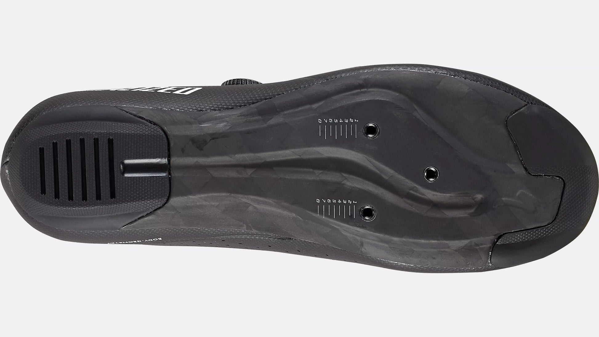- Woven Carbon sole engineered to be stiff, yet light with a large rubber heel and toe for off-the-bike traction.